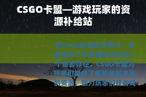 在CSGO的游戏世界中,卡盟成为了众多玩家关注的一个重要存在,CSGO卡盟为玩家们提供了各种各样丰富的资源,助力玩家们在游戏中更好地展现自己的实力,提升游戏体验。