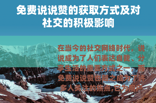 在当今的社交网络时代,说说成为了人们表达自我、分享生活的重要方式之一,而免费说说赞也随之成为了许多人关注的焦点,它为用户带来了更多的社交互动和满足感。