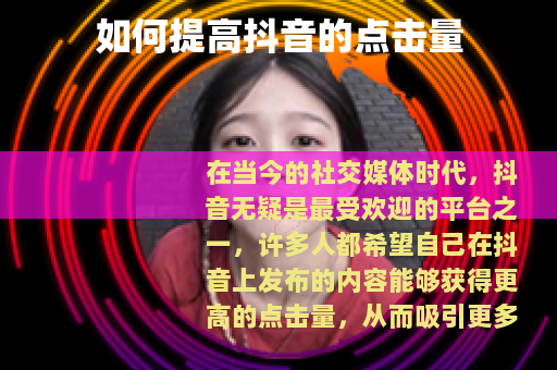 在当今的社交媒体时代,抖音无疑是最受欢迎的平台之一,许多人都希望自己在抖音上发布的内容能够获得更高的点击量,从而吸引更多的关注和粉丝,怎么可以把抖音的点击量提高呢?以下是一些实用的方法。 质量是关键,要确保你的视频内容具有独特性、趣味性和实用性,独特的内容能够让用户在众多视频中眼前一亮,趣味性则会吸引他们停留观看,而实用性的内容往往更容易被用户分享,你可以分享一些生活小妙招、美食制作教程、美妆技巧等,这些都是用户比较感兴趣的话题。
