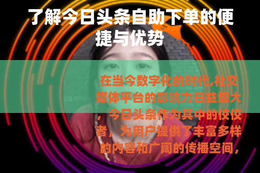 在当今数字化的时代,社交媒体平台的影响力日益增大,今日头条作为其中的佼佼者,为用户提供了丰富多样的内容和广阔的传播空间,而今日头条自助下单功能的出现,更是为众多用户带来了极大的便利,开启了一种全新的体验模式。