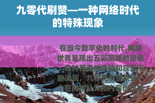 在当今数字化的时代,网络世界呈现出五彩斑斓的景象,各种新奇的事物和现象不断涌现,九零代刷赞就是一个在网络社交和内容创作领域中具有一定影响力的特殊现象。