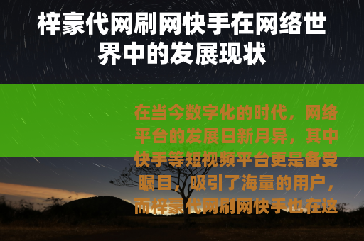 在当今数字化的时代,网络平台的发展日新月异,其中快手等短视频平台更是备受瞩目,吸引了海量的用户,而梓豪代网刷网快手也在这样的大背景下应运而生,成为了一个具有一定影响力的网络现象。