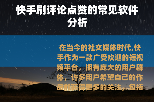 在当今的社交媒体时代,快手作为一款广受欢迎的短视频平台,拥有庞大的用户群体,许多用户希望自己的作品能获得更多的关注,包括评论和点赞,于是一些刷评论点赞的软件应运而生。