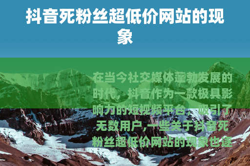 在当今社交媒体蓬勃发展的时代,抖音作为一款极具影响力的短视频平台,吸引了无数用户,一些关于抖音死粉丝超低价网站的现象也逐渐进入人们的视野。
