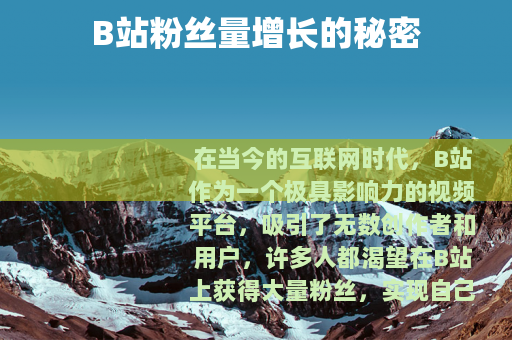 在当今的互联网时代,B站作为一个极具影响力的视频平台,吸引了无数创作者和用户,许多人都渴望在B站上获得大量粉丝,实现自己的创作价值和影响力,B站的粉丝量究竟是怎么涨的呢?
