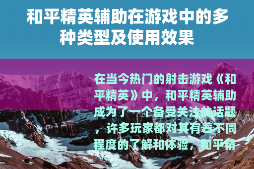 在当今热门的射击游戏《和平精英》中,和平精英辅助成为了一个备受关注的话题,许多玩家都对其有着不同程度的了解和体验。
