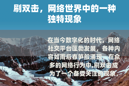 在当今数字化的时代,网络社交平台蓬勃发展,各种内容如雨后春笋般涌现,在众多的网络行为中,刷双击成为了一个备受关注的现象。