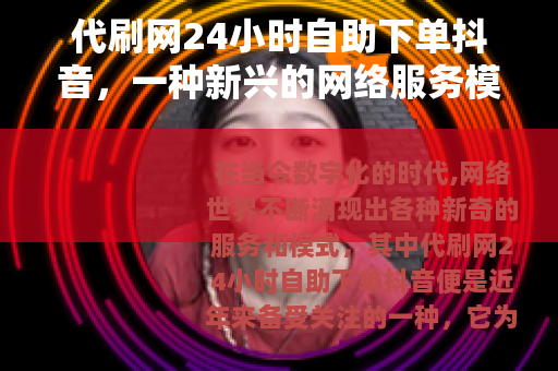 在当今数字化的时代,网络世界不断涌现出各种新奇的服务和模式,其中代刷网24小时自助下单抖音便是近年来备受关注的一种,它为用户提供了一种在抖音平台上快速提升数据的途径,满足了部分用户对于账号活跃度和影响力提升的需求。