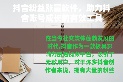 在当今社交媒体蓬勃发展的时代,抖音作为一款极具影响力的短视频平台,吸引了无数用户,对于许多抖音创作者来说,拥有大量的粉丝是他们追求的目标之一,而抖音粉丝涨量软件也因此应运而生。