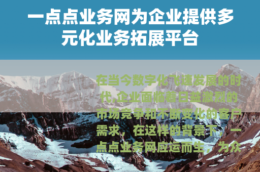 在当今数字化飞速发展的时代,企业面临着日益激烈的市场竞争和不断变化的客户需求,在这样的背景下,一点点业务网应运而生,为众多企业带来了新的发展机遇和可能性。