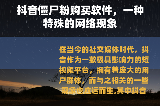 在当今的社交媒体时代,抖音作为一款极具影响力的短视频平台,拥有着庞大的用户群体,而与之相关的一些现象也应运而生,其中抖音僵尸粉购买软件便是一个备受关注的话题。