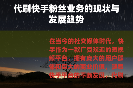 在当今的社交媒体时代,快手作为一款广受欢迎的短视频平台,拥有庞大的用户群体和巨大的商业价值,随着快手平台的不断发展,代刷快手粉丝业务也逐渐兴起,成为了一个备受关注的现象。