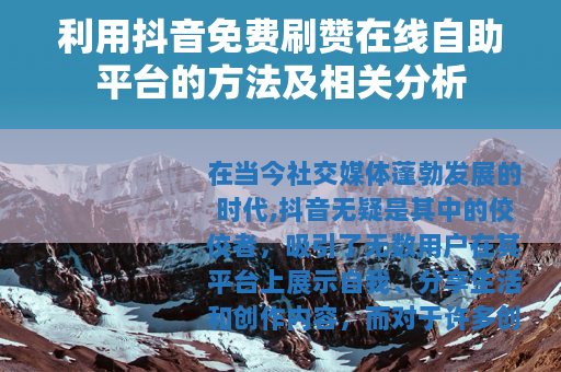 在当今社交媒体蓬勃发展的时代,抖音无疑是其中的佼佼者,吸引了无数用户在其平台上展示自我、分享生活和创作内容,而对于许多创作者来说,获得更多的点赞是他们所期望的,因为点赞数量在一定程度上代表了作品的受欢迎程度和影响力,在这样的背景下,抖音免费刷赞在线自助平台应运而生。