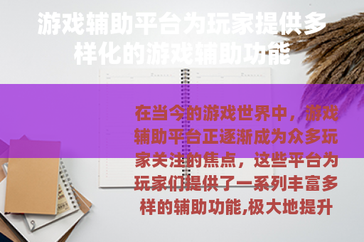 在当今的游戏世界中,游戏辅助平台正逐渐成为众多玩家关注的焦点,这些平台为玩家们提供了一系列丰富多样的辅助功能,极大地提升了玩家们的游戏体验。