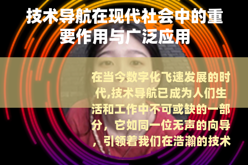 技术导航已经成为现代社会中一道亮丽的风景线,它为我们的生活、工作和学习带来了诸多便利和机遇,我们要善于利用技术导航,充分发挥其优势,同时也要关注其发展过程中出现的问题,共同推动技术导航健康、有序地发展,让它更好地服务于人类社会,为我们创造更加美好的未来。