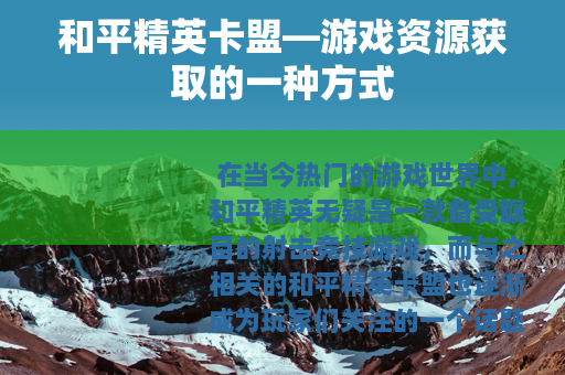 在当今热门的游戏世界中,和平精英无疑是一款备受瞩目的射击竞技游戏,而与之相关的和平精英卡盟也逐渐成为玩家们关注的一个话题。