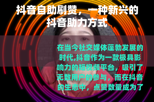 抖音自助刷赞作为一种新兴的抖音助力方式,在一定程度上为抖音用户提供了更多的机会和可能性,它可以帮助创作者快速提升视频的热度,为商家的营销活动提供有力支持,同时也满足了用户对于社交认可的需求,我们也要正确看待它的作用,将其作为一种辅助手段,与优质内容的创作和真实用户的互动相结合,才能在抖音的世界里取得更好的发展。