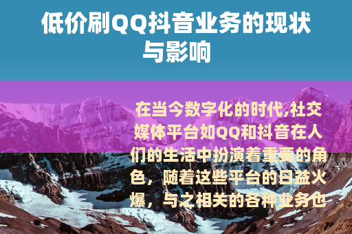 在当今数字化的时代,社交媒体平台如QQ和抖音在人们的生活中扮演着重要的角色,随着这些平台的日益火爆,与之相关的各种业务也应运而生,其中就包括低价刷QQ抖音业务。