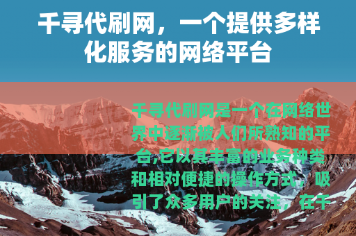 千寻代刷网是一个在网络世界中逐渐被人们所熟知的平台,它以其丰富的业务种类和相对便捷的操作方式,吸引了众多用户的关注。