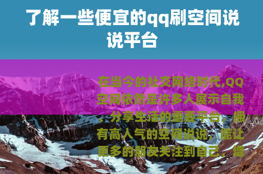 在当今的社交网络时代,QQ空间依然是许多人展示自我、分享生活的重要平台,拥有高人气的空间说说,能让更多的朋友关注到自己,增加社交的乐趣,市场上出现了不少qq刷空间说说的平台,其中一些以价格便宜而受到不少用户的青睐。