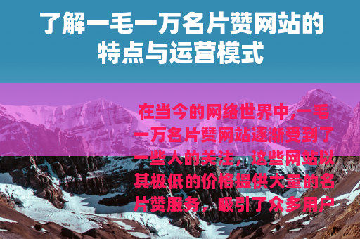在当今的网络世界中,一毛一万名片赞网站逐渐受到了一些人的关注,这些网站以其极低的价格提供大量的名片赞服务,吸引了众多用户的目光。
