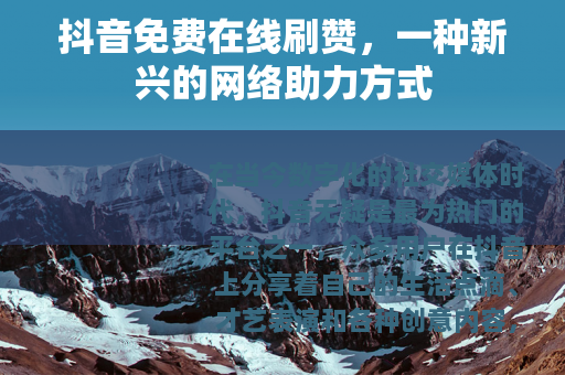 在当今数字化的社交媒体时代,抖音无疑是最为热门的平台之一,众多用户在抖音上分享着自己的生活点滴、才艺表演和各种创意内容,渴望获得更多的关注和点赞,而抖音免费在线刷赞这一现象也随之悄然兴起,为许多用户提供了一种快速提升人气的途径。