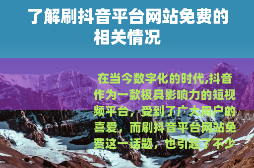 在当今数字化的时代,抖音作为一款极具影响力的短视频平台,受到了广大用户的喜爱,而刷抖音平台网站免费这一话题,也引起了不少人的关注。