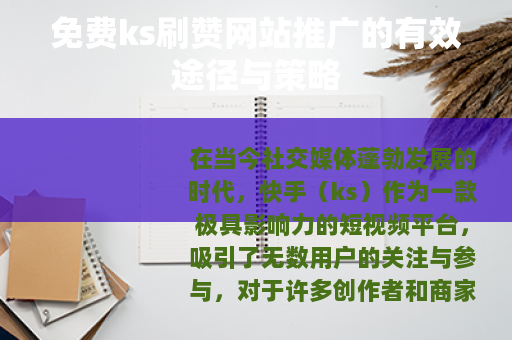 在当今社交媒体蓬勃发展的时代,快手(ks)作为一款极具影响力的短视频平台,吸引了无数用户的关注与参与,对于许多创作者和商家来说,拥有高点赞量是提升作品热度和影响力的重要因素之一,免费ks刷赞网站的推广也成为了一个热门话题。