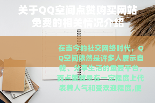 在当今的社交网络时代,QQ空间依然是许多人展示自我、分享生活的重要平台,而点赞数量在一定程度上代表着人气和受欢迎程度,便出现了一些声称可以提供免费QQ空间点赞购买服务的网站。