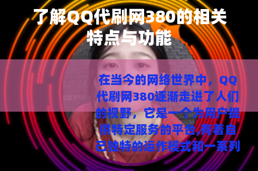 在当今的网络世界中,QQ代刷网380逐渐走进了人们的视野,它是一个为用户提供特定服务的平台,有着自己独特的运作模式和一系列的功能特点。