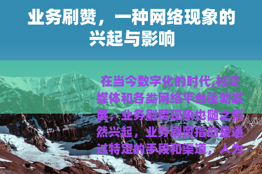 在当今数字化的时代,社交媒体和各类网络平台蓬勃发展,业务刷赞现象也随之悄然兴起,业务刷赞指的是通过特定的手段和渠道,人为地增加点赞数量、评论数量或其他互动数据,以提升某个账号、内容或产品在网络上的热度和影响力。