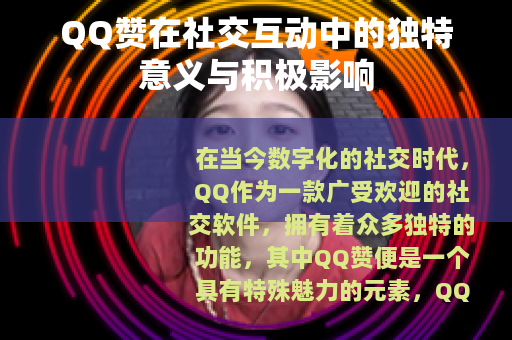 在当今数字化的社交时代,QQ作为一款广受欢迎的社交软件,拥有着众多独特的功能,其中QQ赞便是一个具有特殊魅力的元素,QQ赞以一种简洁而有力的方式,在QQ用户的社交互动中扮演着重要的角色,为人们的网络社交生活增添了别样的色彩。