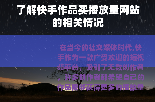 在当今的社交媒体时代,快手作为一款广受欢迎的短视频平台,吸引了无数创作者,许多创作者都希望自己的作品能够获得更多的播放量,从而提高知名度和影响力,在这种需求下,快手作品买播放量的网站也应运而生。