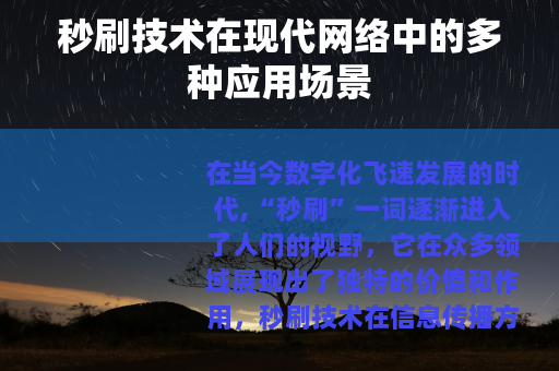 秒刷技术在当今社会的多个领域都有着广泛而重要的应用,它以其快速、高效的特点,为人们的生活、工作和学习带来了极大的便利,推动了各个行业的发展和进步,随着科技的不断发展,相信秒刷技术将会在更多的领域得到应用和拓展,为人们创造更加美好的数字化生活。