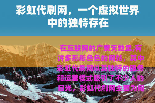 在互联网的广袤天地里,有许多形形色色的网站,其中彩虹代刷网以其独特的服务和运营模式吸引了不少人的目光。
