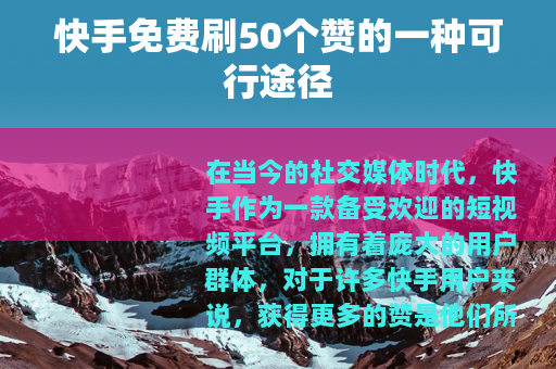 要想在快手上免费刷到50个赞,需要从多个方面入手,不断努力和尝试,只要你坚持不懈,就一定能够实现自己的目标,在快手的世界里拥有自己的一片天地。