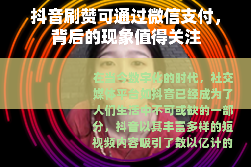 在当今数字化的时代,社交媒体平台如抖音已经成为了人们生活中不可或缺的一部分,抖音以其丰富多样的短视频内容吸引了数以亿计的用户,在这个平台上,点赞数成为了衡量一个视频受欢迎程度的重要指标之一,而随着抖音的火爆,一种与之相关的现象也悄然兴起,那就是刷赞行为,并且刷赞的支付方式之一便是微信支付。