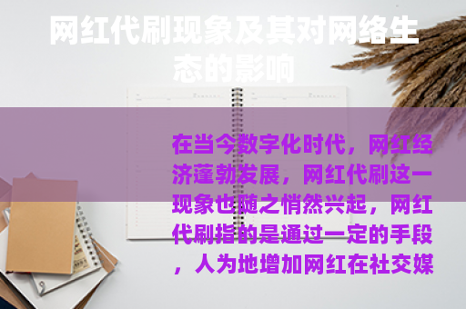 网红代刷现象是网红经济发展过程中出现的一个问题,它对网络生态和网红经济的健康发展都带来了挑战,但只要我们各方共同努力,采取有效的措施加以应对,就一定能够克服这一问题,让网红经济在一个更加公平、健康、有序的环境中发展壮大,为社会经济的发展注入新的活力,为人们的生活带来更多的乐趣和价值,我们要积极引导网红代刷现象朝着积极的方向发展,使其成为推动网红经济发展的有益力量,而不是阻碍其发展的绊脚石,在未来的发展中,我们相信通过不断的努力和创新,网红经济将会迎来更加美好的明天,而网红代刷现象也将得到有效的治理和规范,不再成为影响网络生态的负面因素。