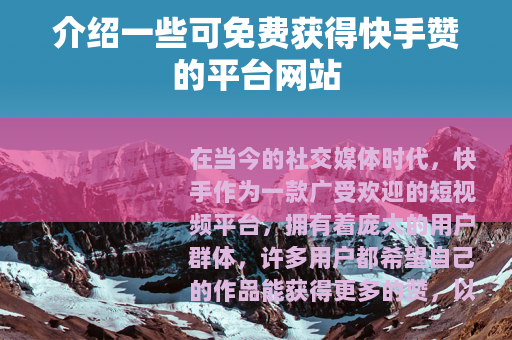 在当今的社交媒体时代,快手作为一款广受欢迎的短视频平台,拥有着庞大的用户群体,许多用户都希望自己的作品能获得更多的赞,以此来增加作品的曝光度和影响力,而市场上也出现了一些声称可以提供免费快手赞的平台网站。