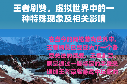 在当今的网络游戏世界中,王者刷赞已经成为了一个备受关注的话题,王者刷赞,就是通过一些特定的手段来增加王者荣耀游戏中玩家的点赞数量,这一现象在王者玩家群体中逐渐兴起,有着其独特的发展历程和多方面的影响。