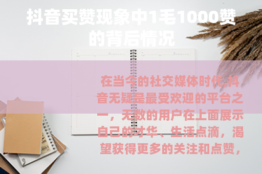 在当今的社交媒体时代,抖音无疑是最受欢迎的平台之一,无数的用户在上面展示自己的才华、生活点滴,渴望获得更多的关注和点赞,而在这个过程中,一种“买赞”的现象悄然兴起,1毛1000赞”的说法更是引起了不少人的关注。