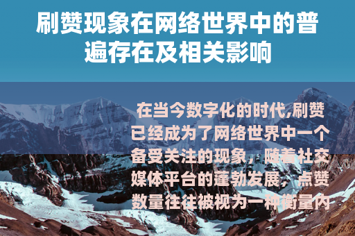 在当今数字化的时代,刷赞已经成为了网络世界中一个备受关注的现象,随着社交媒体平台的蓬勃发展,点赞数量往往被视为一种衡量内容受欢迎程度和影响力的重要指标,无论是个人用户、网红博主,还是各类商业机构,都对点赞数有着不同程度的追求,而刷赞行为也在这种需求的推动下悄然兴起。