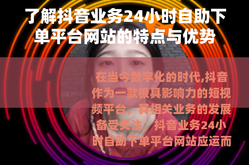 在当今数字化的时代,抖音作为一款极具影响力的短视频平台,其相关业务的发展备受关注,抖音业务24小时自助下单平台网站应运而生,为众多用户提供了便捷的服务。