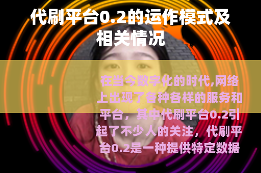 在当今数字化的时代,网络上出现了各种各样的服务和平台,其中代刷平台0.2引起了不少人的关注,代刷平台0.2是一种提供特定数据刷量服务的在线平台,它以相对较低的价格吸引着众多用户。