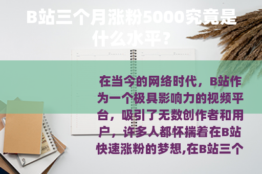 在当今的网络时代,B站作为一个极具影响力的视频平台,吸引了无数创作者和用户,许多人都怀揣着在B站快速涨粉的梦想,在B站三个月涨粉5000到底是一个怎样的水平呢?