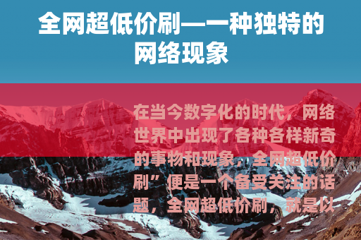 在当今数字化的时代,网络世界中出现了各种各样新奇的事物和现象,全网超低价刷”便是一个备受关注的话题。