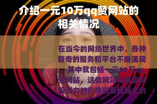 在当今的网络世界中,各种新奇的服务和平台不断涌现,其中就包括一元10万qq赞网站,这类网站以其极具吸引力的价格和看似强大的功能,吸引了不少用户的关注。