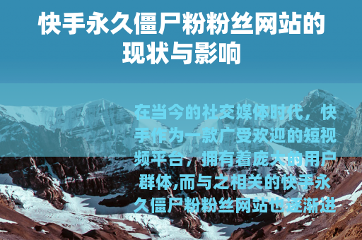 在当今的社交媒体时代,快手作为一款广受欢迎的短视频平台,拥有着庞大的用户群体,而与之相关的快手永久僵尸粉粉丝网站也逐渐进入了人们的视野。