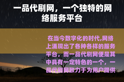 在当今数字化的时代,网络上涌现出了各种各样的服务平台,而一品代刷网便是其中具有一定特色的一个。