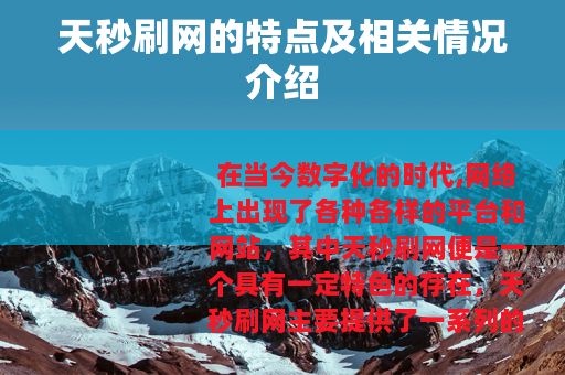 在当今数字化的时代,网络上出现了各种各样的平台和网站,其中天秒刷网便是一个具有一定特色的存在。